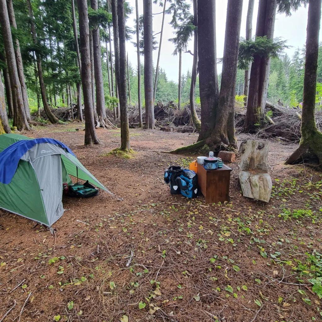 Having arrived in Port Angeles on the ferry, I followed the Olympic Discovery Cycle Trail due east. It’s a popular route, but already things felt a little edgy. I’d have happily camped beside one of the many cycle paths I followed in Nova Scotia. Yet here was a large tent and a shopping trolley of belongings from one homeless person. There was another homeless man, walking along the track with his eyes glazed. I said hello, and he didn’t register. I don’t mean to be critical of homeless people here. It’s a desperate situation in which to find oneself. But it must also lend life a certain desperation, especially if addiction is also involved, and I was glad that night to stay in a state campground by Dungeness Spit. The great thing about cycle touring in the west of the USA is that most state campgrounds have hiker biker areas where you can camp for a fraction of the cost, and with no need to reserve a pitch many months in advance (in contrast to vehicular tourists). I was especially glad of this as I turned up in Dungeness as the light began to fade and I had my choice of the five or six empty pitches.