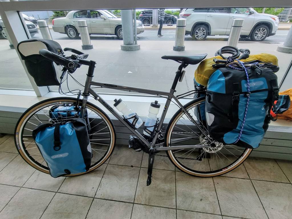 My companion along the way will be my new friend Spike – a Thorn Club Tour Mk 4 bike! And ain’t she just a beauty…here she is in Halifax International Airport, ready for the road.